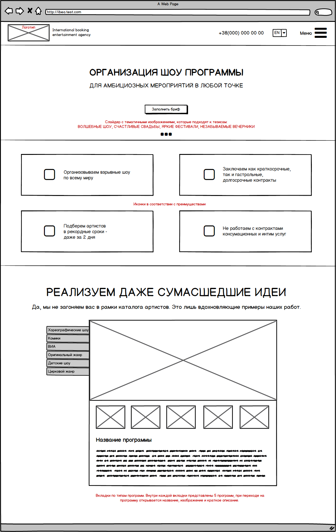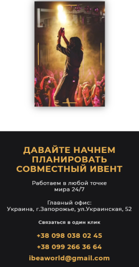 Завдання - розробити інформативний landing page для залучення потенційних клієнтів і артистів для подальшої співпраці.
